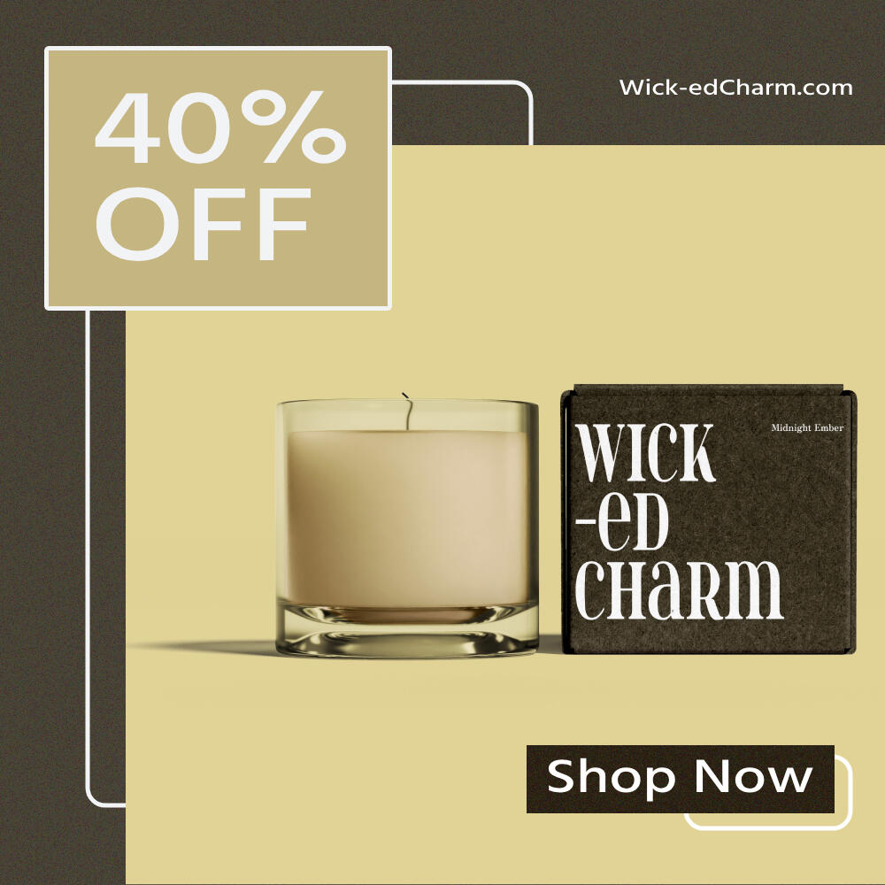 I constructed branding and social media posts for Wick-ed Charm and its candle, Midnight Ember. The design blends bold visuals with a cozy, mysterious vibe. The candle’s bright yellow color pops against a sleek black box, inspired by its scent smoky wood, amber, and vanilla. I focused on building a brand that feels both elegant and intriguing, with a strong visual identity to match its sensory appeal.